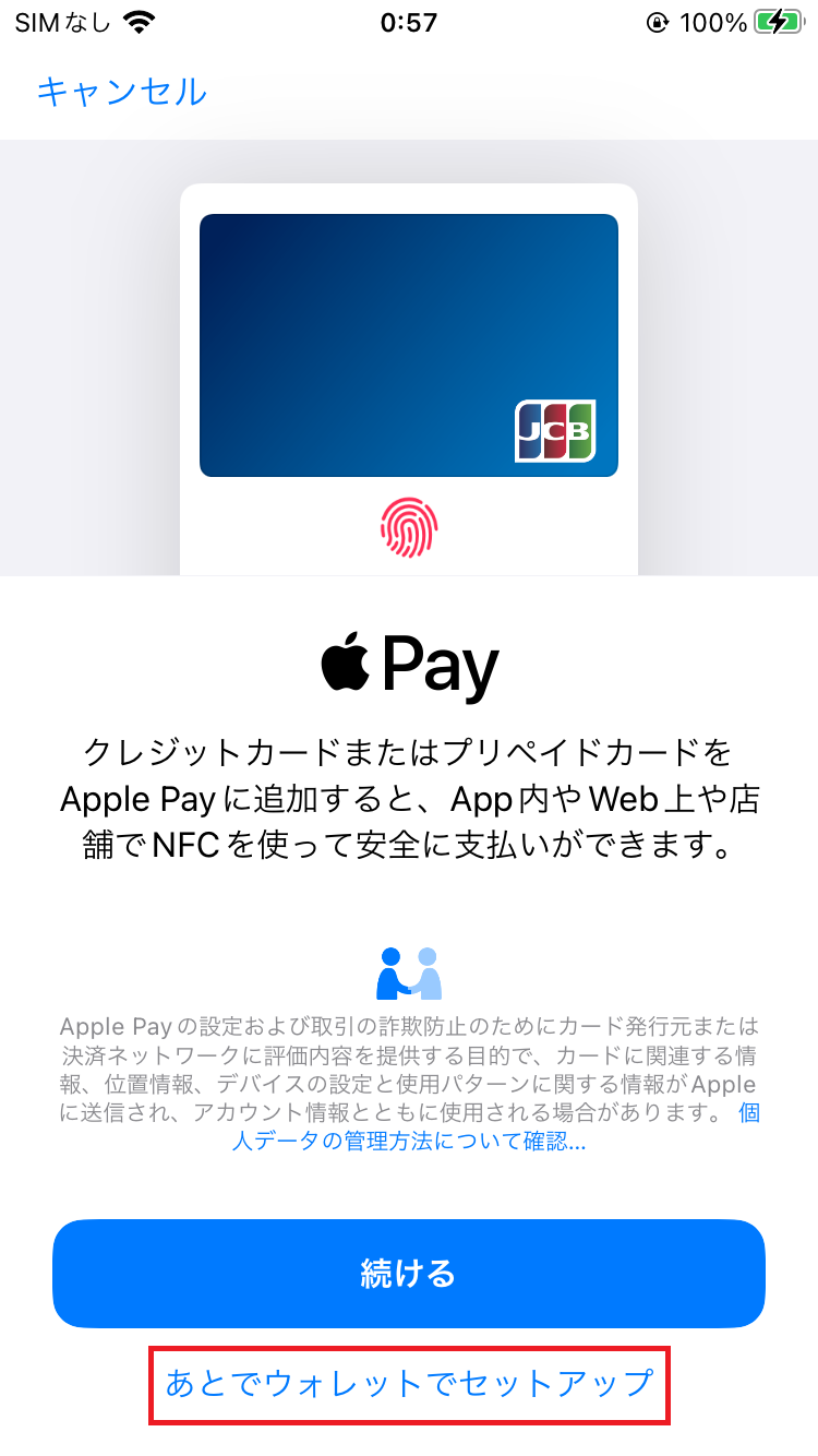 ③「あとでウォレットでセットアップ」をタップします。